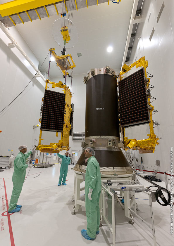 This week's mating operation with Fregat will be followed by Soyuz' subsequent rollout to the ELS launch complex near the French Guiana town of Sinnamary, allowing the satellite payload to be installed on the medium-lift workhorse launcher.