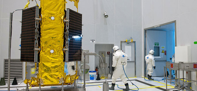 Thales Alenia Space produced the Ka-band relay platforms, which have a liftoff mass of approximately 700 kg. each and will create a constellation providing telecommunications and Internet services over Asia, Africa, South America, Australia and the Middle East – combining the global reach of satellite coverage with the speed of a fiber-optic network.