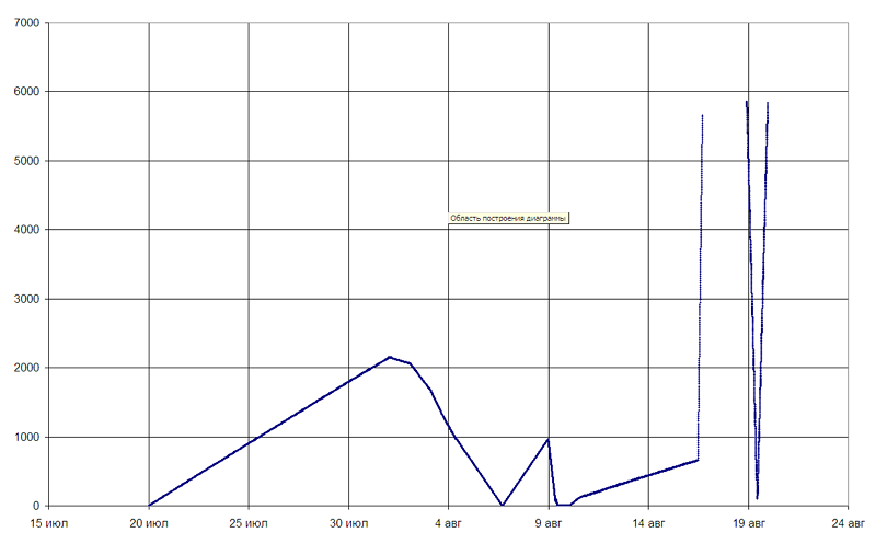 Бонус -- кордебалет объекта C относительно B в координатах "расстояние вдоль орбиты -- средняя высота" за 5-11 августа.