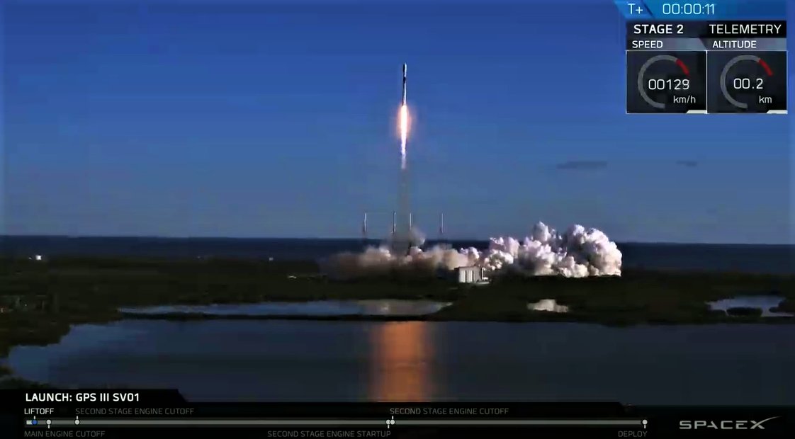 What a beautiful morning for a launch. SpaceX's Falcon 9 rocket is seen launching the Air Force's first #GPSIII satellite, dubbed "Vespucci," at 8:51am this morning.
