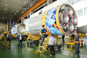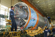 Продолжается подготовка космического корабля "Союз ТМА-11М" к запуску по программе Международной космической станции.