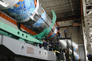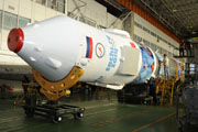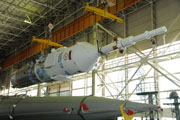 В монтажно-испытательном корпусе РН завершена общая сборка ракеты-носителя "Союз-ФГ" с головным блоком.