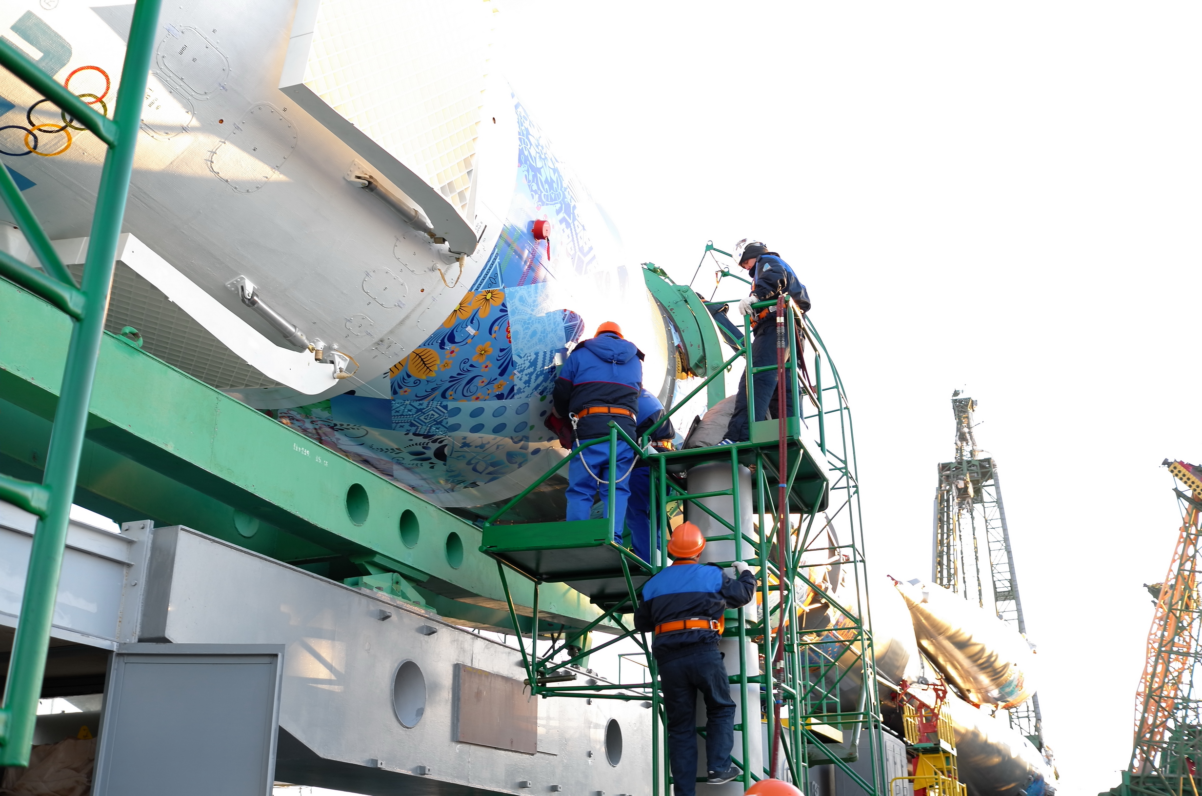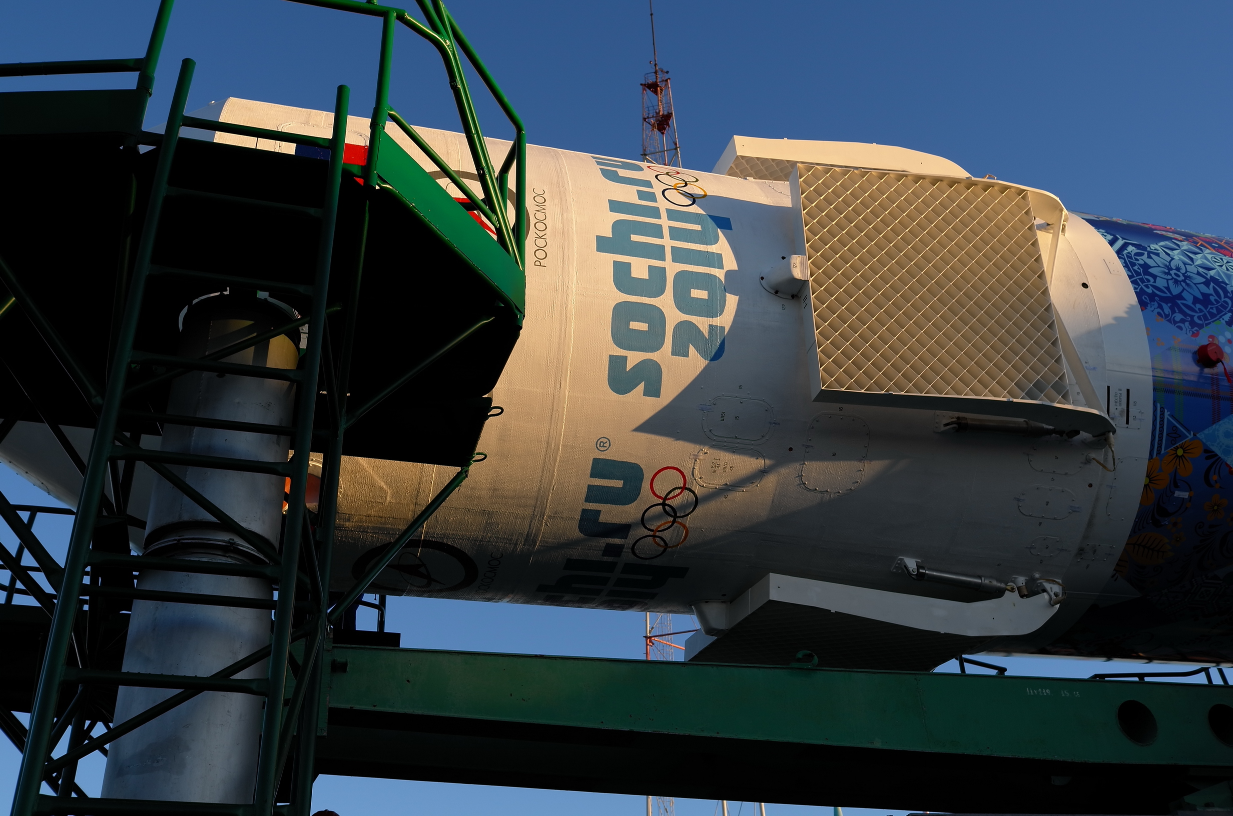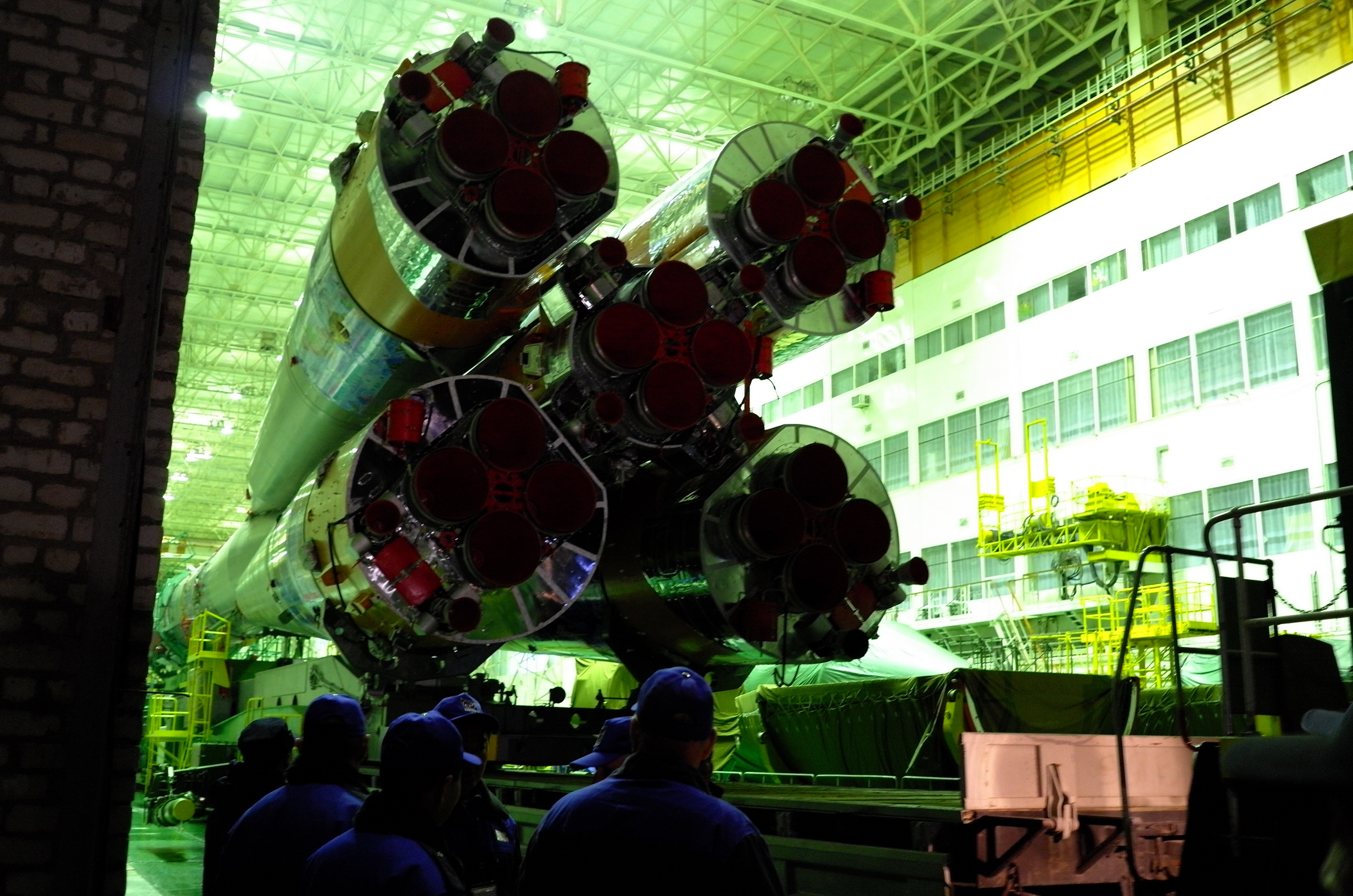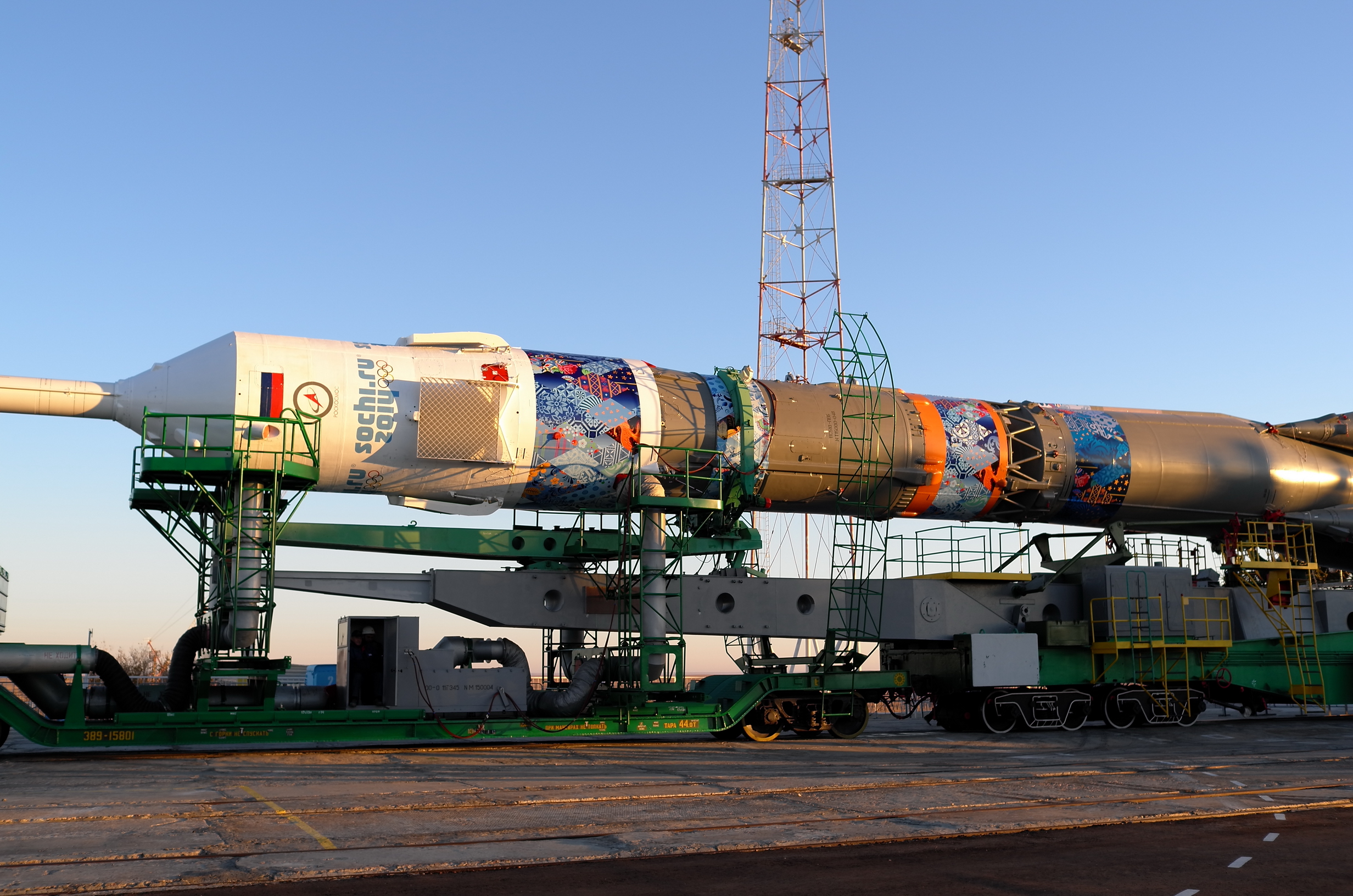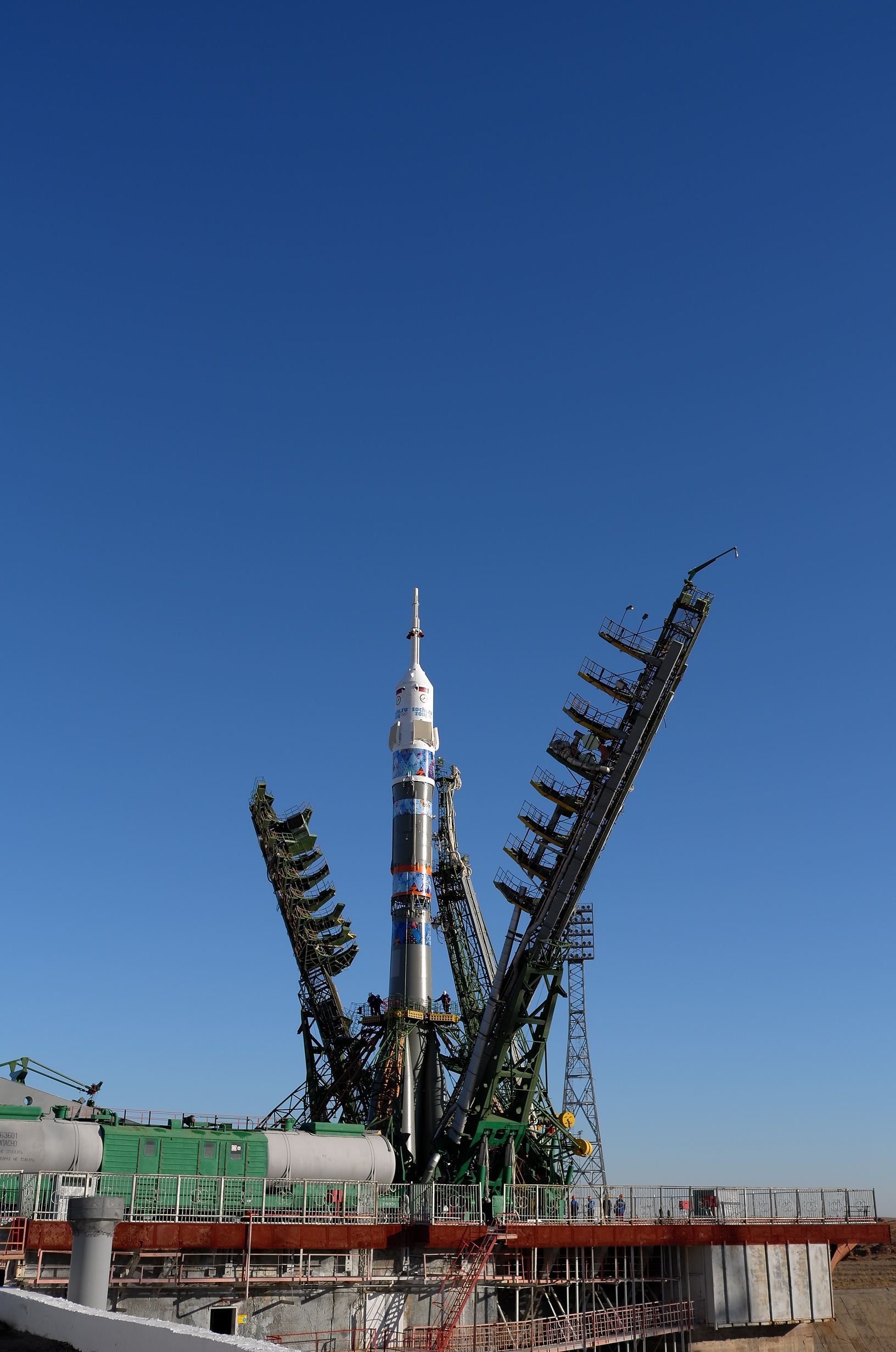 Ракету-носитель "Союз-ФГ" с пилотируемым кораблем "Союз ТМА-11М" вывезли из монтажно-испытательного комплекса и установили на первой ("гагаринской" ;)  площадке космодрома Байконур, сообщил РИА Новости представитель Роскосмоса.