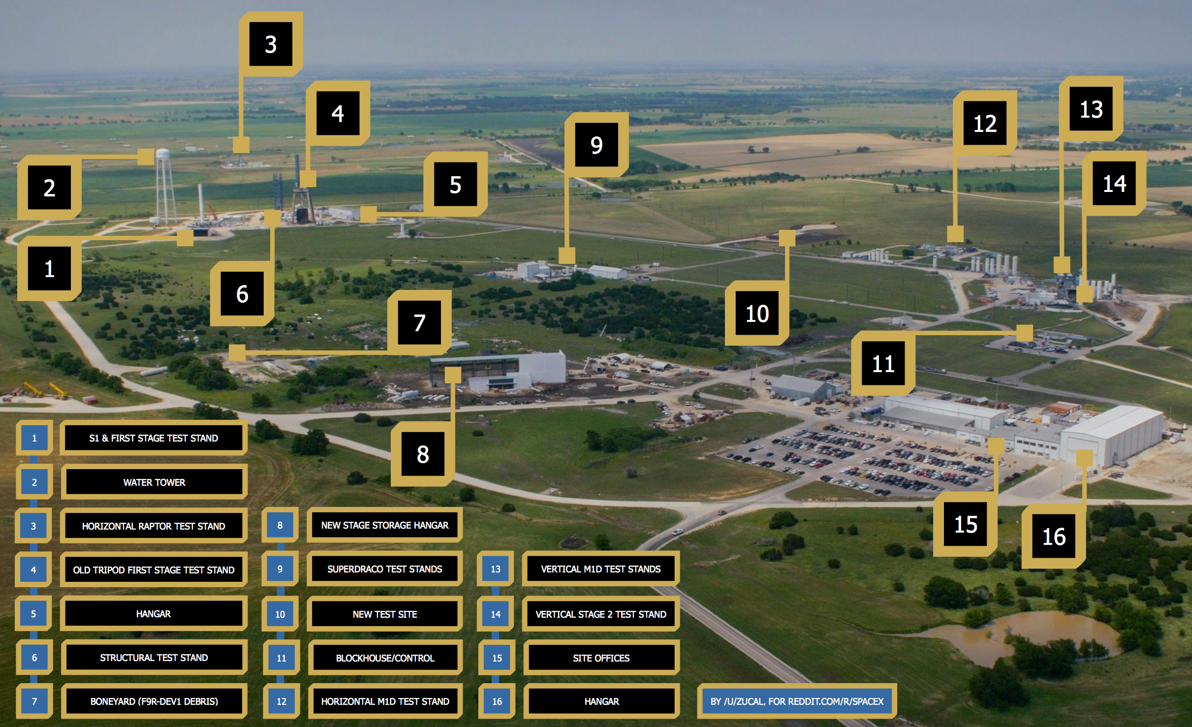 • SuperDraco single engine and cluster test stands (left of picture, past 'grasshopper that way')