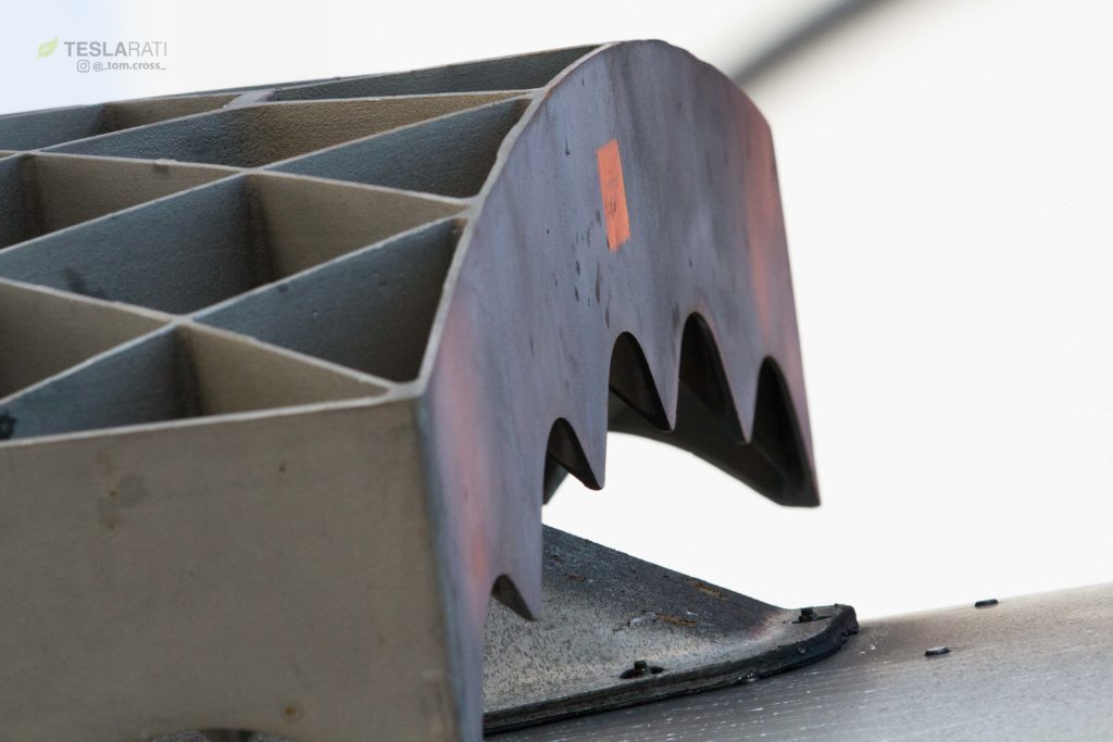 Титановые рули одного из боковых ускорителей Falcon Heavy крупным планом.