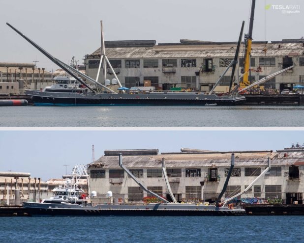 SpaceX's fairing catcher Mr Steven prepares to debut his new net and arms to catch a Falcon 9 payload fairing, NET July 25. (Pauline Acalin)