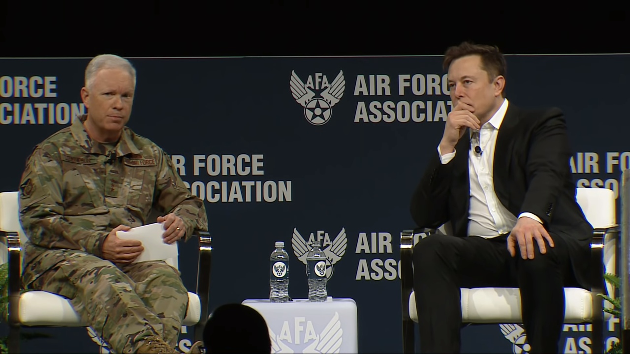 Илон Маск принял участие в беседе с генерал-лейтенантом Джоном Томпсоном на симпозиуме Ассоциации Военно-воздушных сил США 2020 года