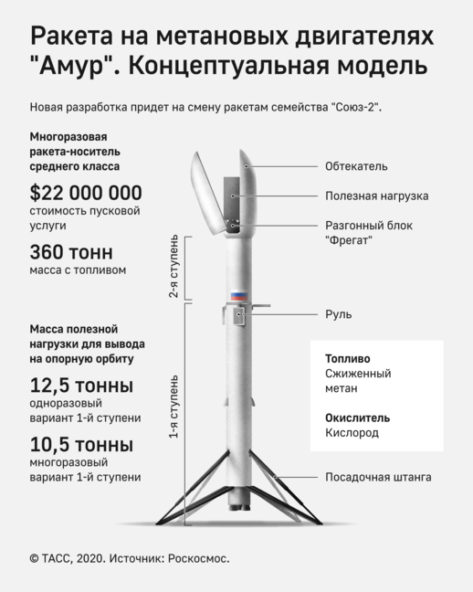Метан — это в первую очередь дешевое топливо, его переработка и использование широко освоено другими отраслями промышленности, что позволяет использовать уже готовые инфраструктурные решения. Например, не нужно разрабатывать какие-то особые хранилища для метана на наземном комплексе "Амура" — будут взяты стандартные конструкции ПАО "Газпром". Более того, всего в 50 километрах от Восточного в рамках контракта с Китаем строится газоперерабатывающий комплекс "Газпрома" (Амурский ГПЗ), от которого на старт "Амура" достаточно протянуть ветку газопровода. Заправка ракеты топливом станет еще дешевле.