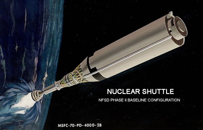 Научно-исследовательские работы в области космических ракетных двигателей (в последующие годы) будут ориентированы в основном на создание ядерного ракетного двигателя (ЯРД), использующего энергию реакции деления. Будут созданы и найдут широкое применение в освоении космоса ЯРД с твердофазной активной зоной, имеющие удельную тягу ~1000 сек. Опыт осуществления таких программ и разработки химических ракетных двигателей, работающих при высоких давлениях в камере сгорания, будет служить основой для создания ЯРД с газофазной активной зоной, обладающих удельной тягой 2000—5000 сек при работе в космических условиях.