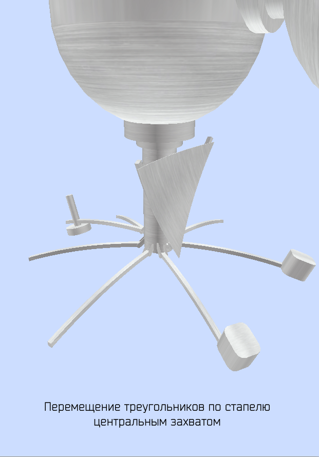 О том, как перемещать треугольники по стапелю центральным захватом, который примагничивает и захватывает треугольники, а дальше отодвигает от стапеля, вращает и придвигает обратно.
