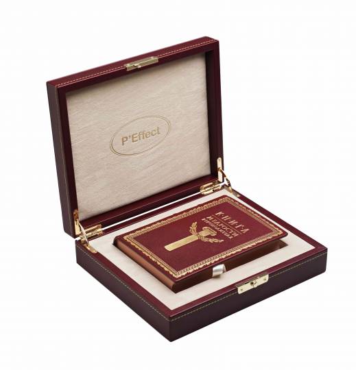 Характеристика изделия: "книга мудрости Руководителя" Материалы: бумага Gardapat, ляссе, отличный полиграфический уровень, художественный переплет, натуральная кожа, блинт, тиснение золотом, включая форзац и обрез. Подарочный футляр из ценных пород дерева, с бархатным ложементом и настольная подставка из ценных пород дерева. Формат: 125х175 мм Кол-во страниц: 416 стр. Внимание!: стоимость книги указана без футляра и подставки Цена книги с футляром: 16900 руб Цена книги с футляром и подставкой из ценных пород дерева: 22100 руб С этим изделием Вы получаете Паспортhttp://luxpodarki.ru/catalog/knigi/mudrost_aforizmy/kniga_mudrosti_rukovoditelja.html
