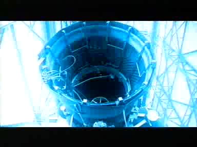 SPAINSAT is lowered into place on the SYLDA 5 dispenser system, which allows Ariane 5 to carry two satellites on a single mission. In the final payload "stack," SPAINSAT and the SYLDA 5 will be installed atop HOT BIRD 7A on the Ariane 5. During flight, SPAINSAT will be deployed first, followed by the separation of SYLDA 5. The mission will be completed with the release of HOT BIRD 7A. SPAINSAT was built by U.S. manufacturer Space Systems/Loral in California, and will be operated by Hisdesat for government telecommunications. Weighing in at 3,683 kg. for liftoff, the spacecraft will be positioned at an orbital slot of 30 deg. West, which places it over the Atlantic Ocean."
