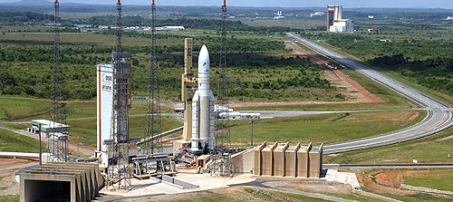The Ariane 5 ECA is ready for liftoff from the Spaceport's ELA-3 launch zone.