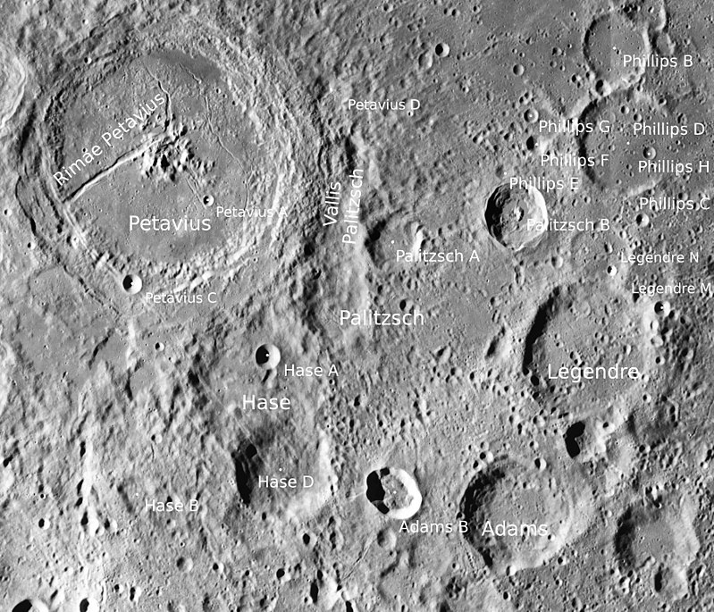 Диаметр кр. Адамс - 63,27 км. Хазе несколько больше, но трудно определить, у него границы полустёрты и перекрыты другими кратерами. Диаметр вспышки... ну 120 км, но никак не 500. К слову, она очень похожа на то, что MIDAS регистрирует: