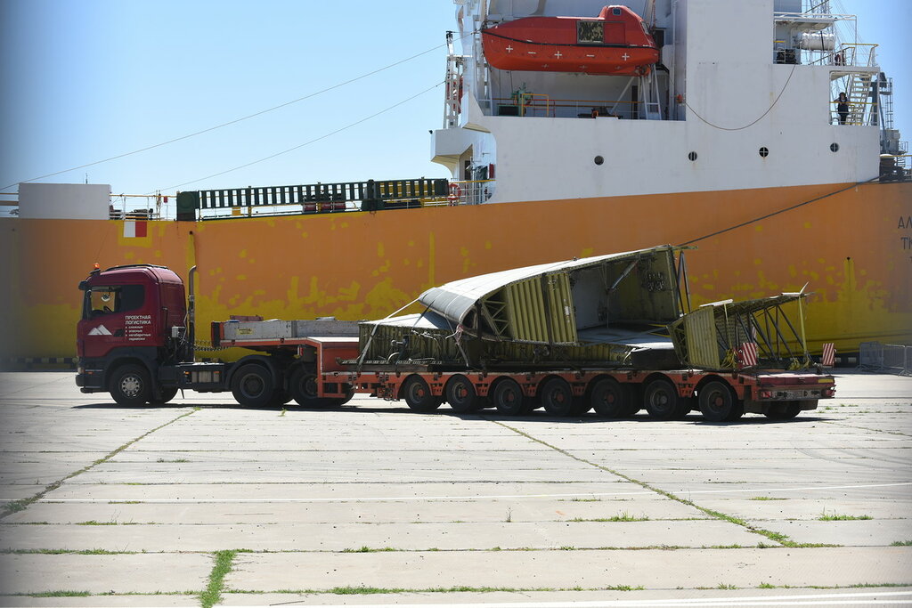 Зачем-то по суше хотели вести в порт Кавказ, это граница с Крымом. Нет бы сразу водным транспортом хотя срок доставки был бы побольше.  Притом экономия на разборке-сборке и наведение лоска.