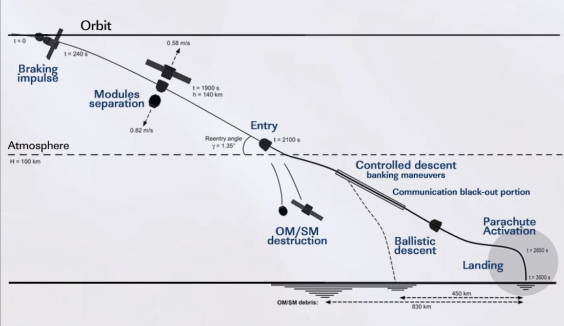 Циклограмма спуска (к времени указанному на схеме нужно прибавить час, чтобы получить реальное московское время) Посадка в 6:25мск
