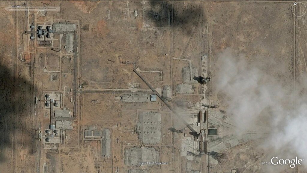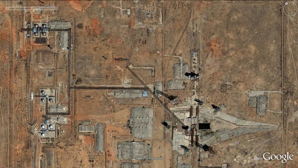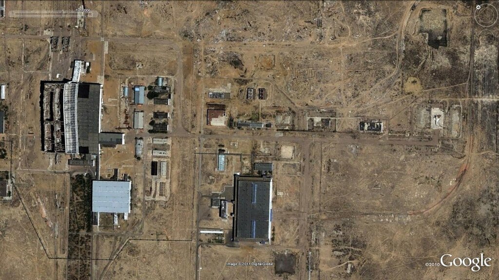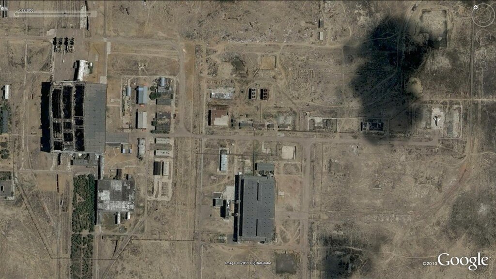 Google Earth 6 - интересная штука. Можно посмотреть, как менялись объекты космической инфраструктуры с годами. Например,
