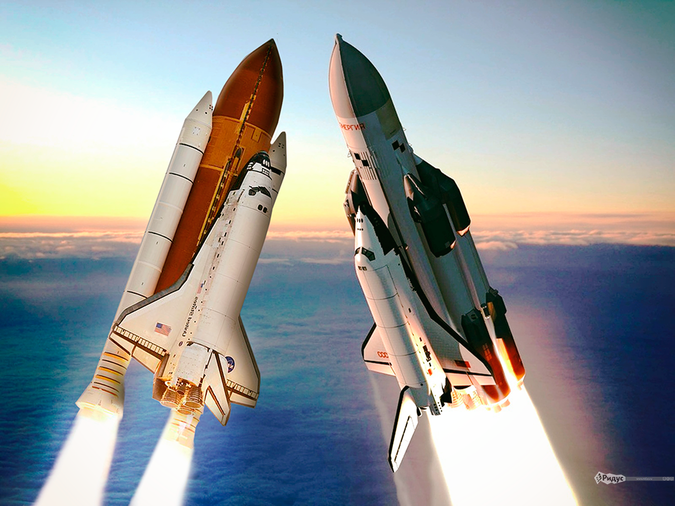 В космической гонке США были в роли догоняющих вплоть до окончания программ Apollo и SkyLab в 1975 году, — пояснил Ридусу эксперт в области космонавтики Игорь Афанасьев. — После чего США и СССР поменялись местами, и программа Шаттл стала первой, где в роли догоняющего выступал уже СССР. Советская программа многоразовых кораблей отставала от американской на 2−3 года".