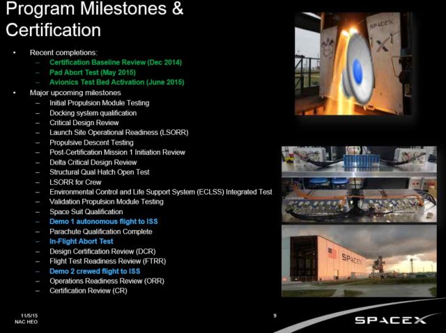 Reed: "Demo-1" (uncrewed) comm'l crew test mission on a "good path" for launch by end of 2016.