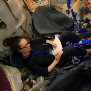In preparation for her 10 day stay aboard the International Space Station, she is learning to conduct various scientific experiments, one of which will be the effect of zero gravity on her voice.