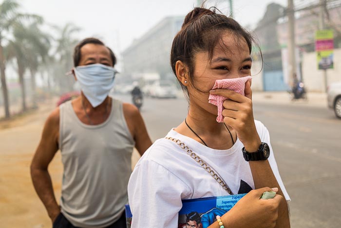 Да никакого пожара. Бангкок с 22 миллионами в 100 км от моря и не продувается. Смог очень часто. Повязки носят многие. Да даже  в совершенно чистом Вьетнаме половина населения в повязках. Там они называются "хот ча" (ладонь-защита) и вообще служат против загара, ибо белая кожа ценится во всех странах Индокитая (и в Китае тоже). Во Вьетнаме нет ни смога ни промышленности ни горящих салок, зато с повязками - более половины. И ночью тоже. Вторая причина - пыль сильно минерализована и вызывает лёгочные заболевания. Что интересно - в Бангкоке с повязками людей много меньше, чем вне его. Лично я никакого смога не ощутил. Естественно, Бангкок раз  20-30 больше Москвы, осмотреть за месяц невозможно и грязь видел и бараки жилые (там живут "дикие" с трёх северных провинций либо мусульмане с трёх южных). Остальные 20 провинций считаются центральными и ничуть не менее цивилизованы, чем Подмосковье.
