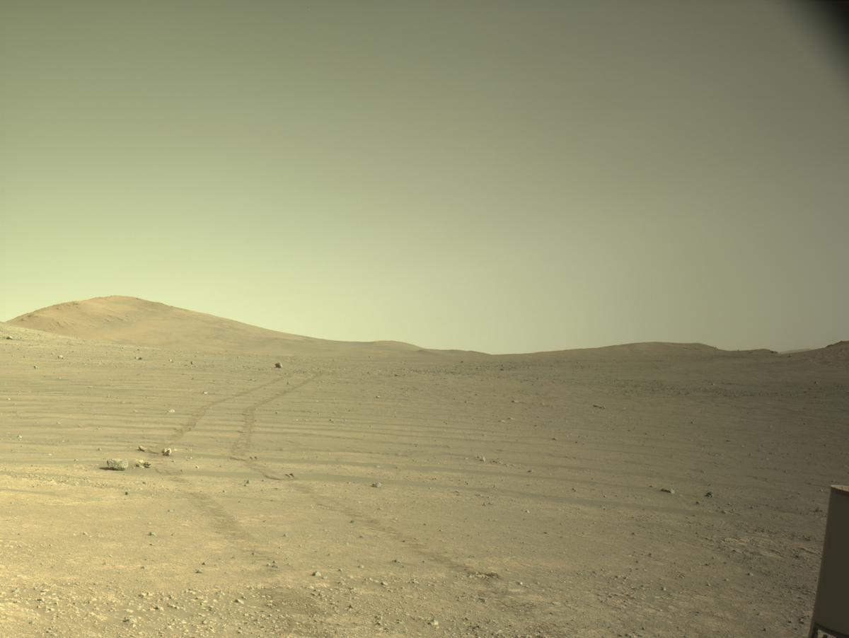 ЦитироватьМарсоход NASA Mars Perseverance получил это изображение с помощью бортовой левой навигационной камеры (Navcam). Камера расположена высоко на мачте марсохода и помогает в управлении.