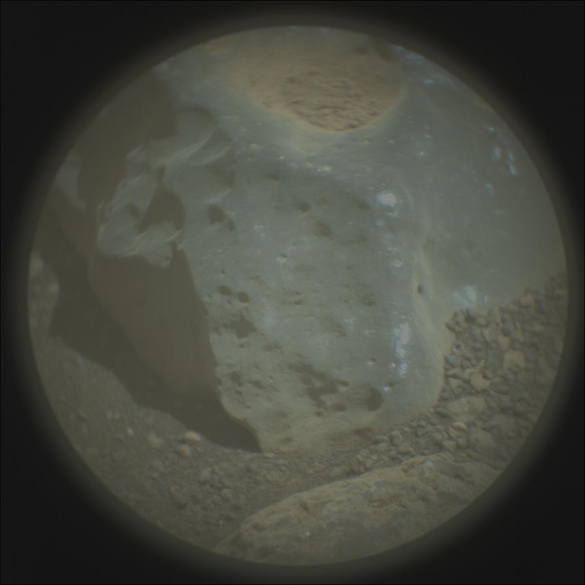 ЦитироватьМарсоход NASA Mars Perseverance получил это изображение с помощью своего автофокуса и контекстного имиджера SHERLOC (ACI), расположенного на башне на конце роботизированной руки марсохода.