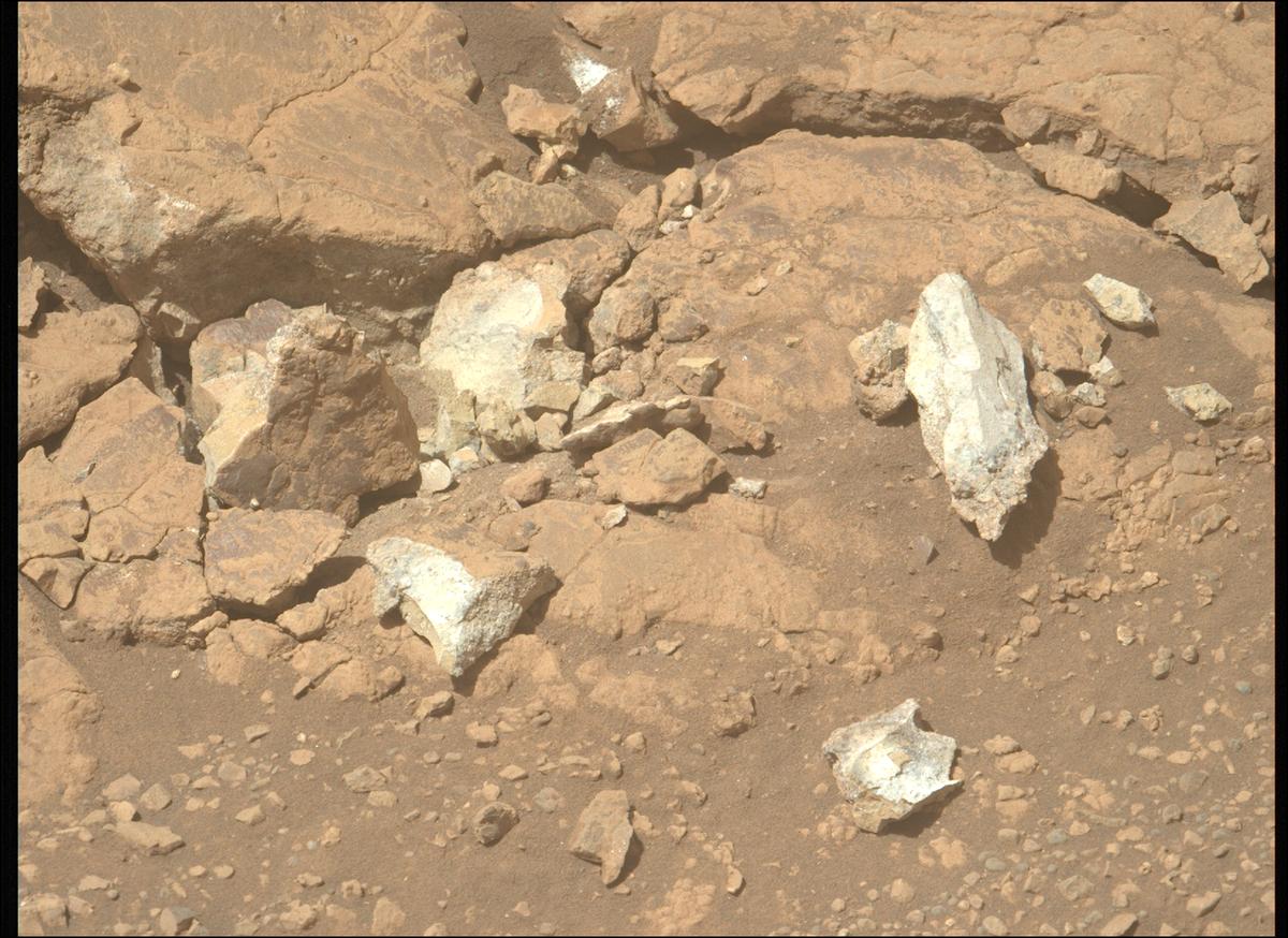 Снимком недели стала фотография с фрагментами камня, который, судя по всему, был разрушен сверлом при попытке взятия образца. НАСА пишет: