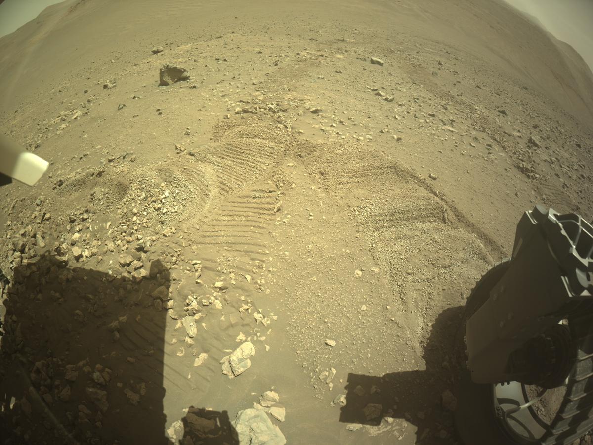 ЦитироватьМарсоход NASA Perseverance получил это изображение с помощью  правой навигационной камеры (Navcam). Камера расположена высоко на мачте марсохода и помогает управлять им.