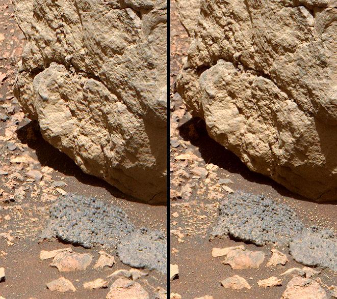 Такую породу команда ровера уже видела, как и мы, эти шарики называются "сферулы", "голубика","черника", и т.д.