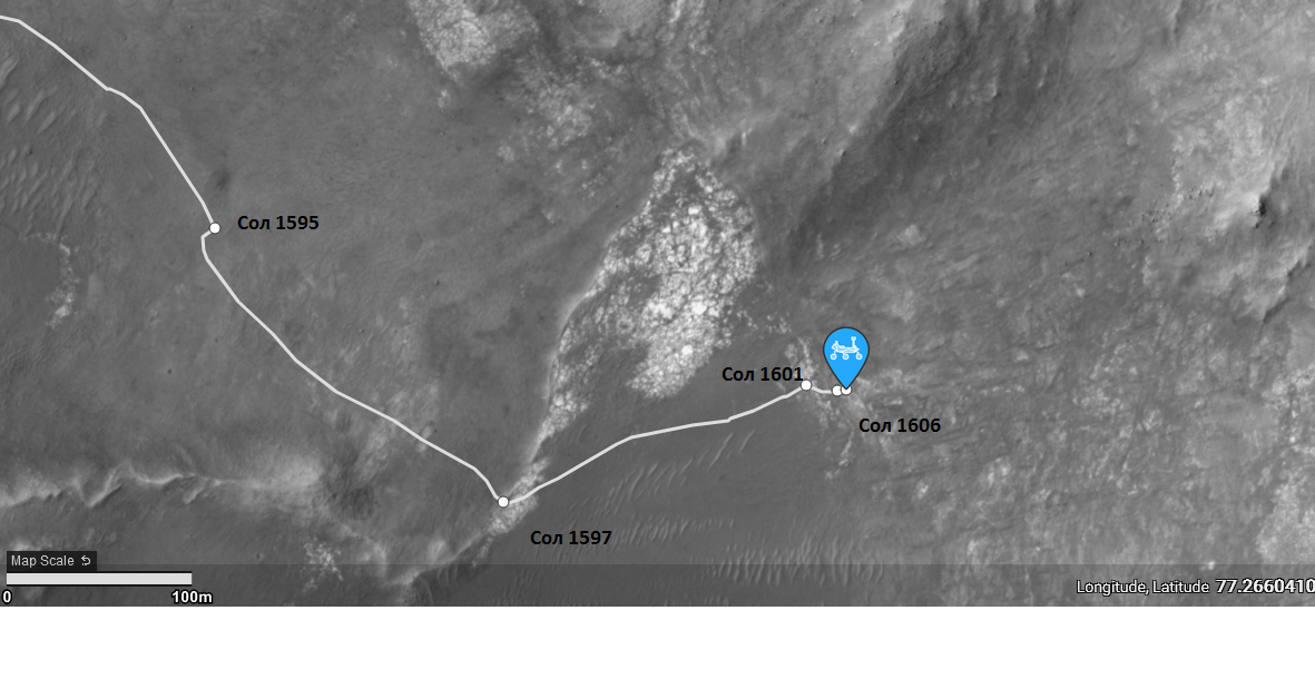 На 1606 сол была остановка ровера в ходе поездки, поэтому на карте две метки "Сол 1606".