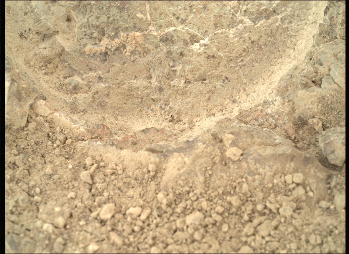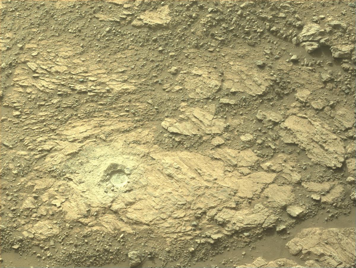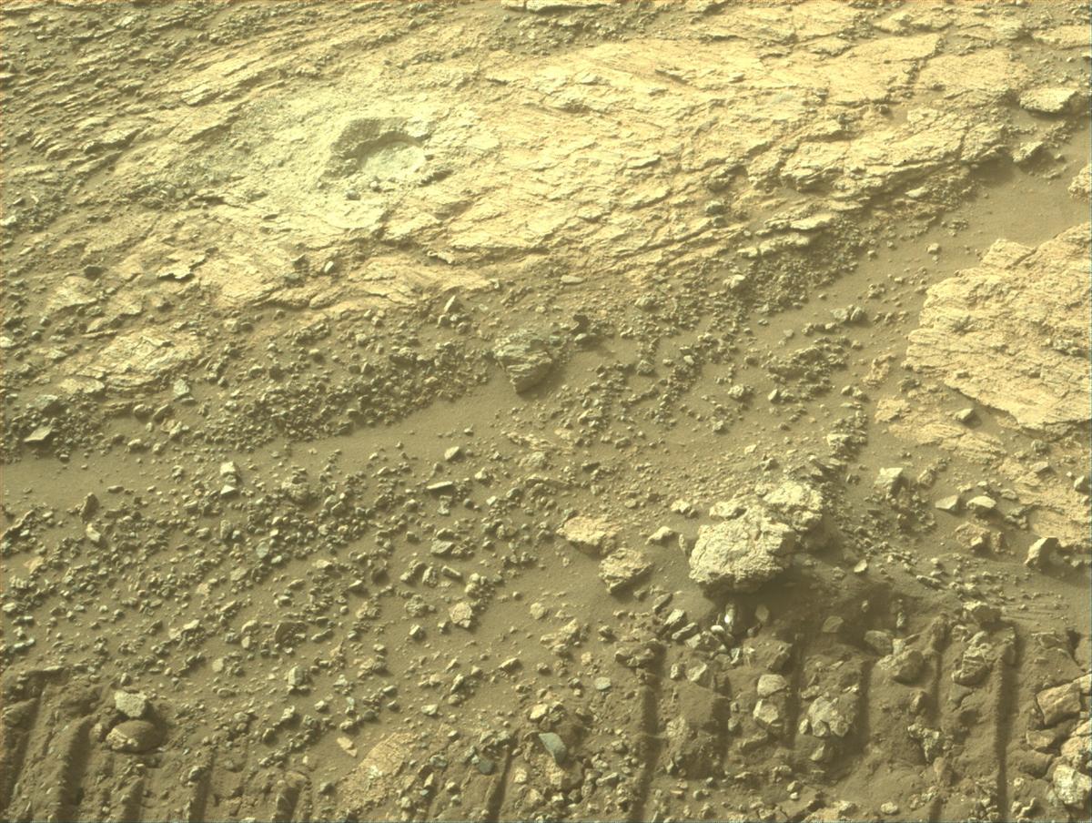 За краем пятна - рыхлая порода, возможно это крайнее пятно, напомню как оно выглядело при съемке навигационной камерой 2-3 дня назад: