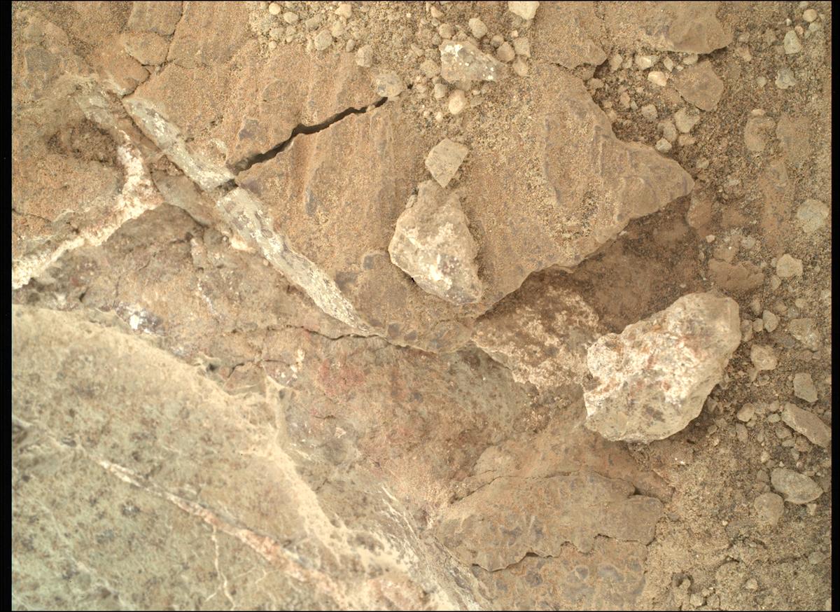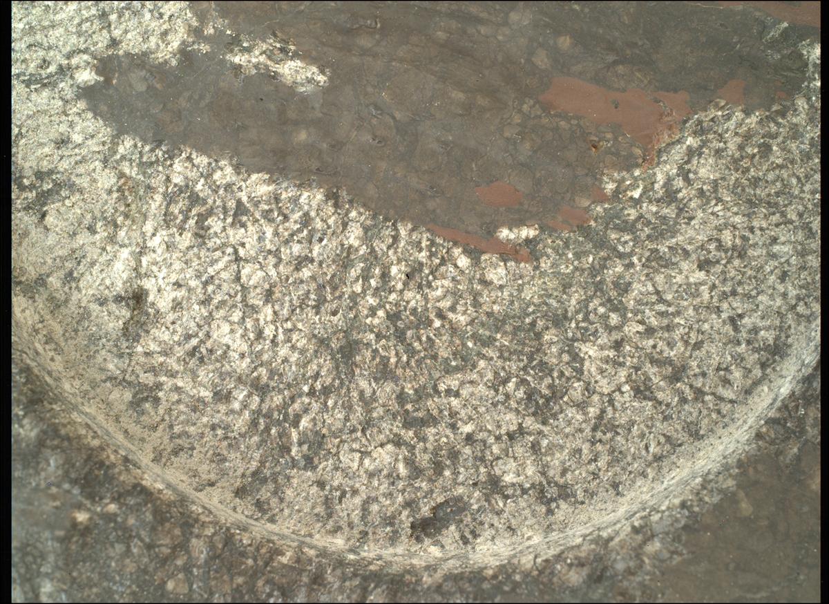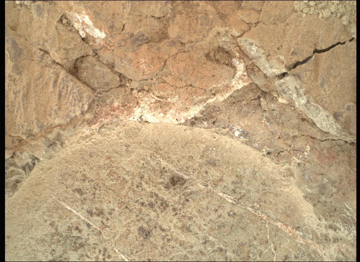 Цитата: andr59 от 28.09.2025 14:14:46Сегодня 28 сентября (1637 сол) исследования абразивного пятна продолжились вечером при искусственном освещении. Видны белые прожилки: