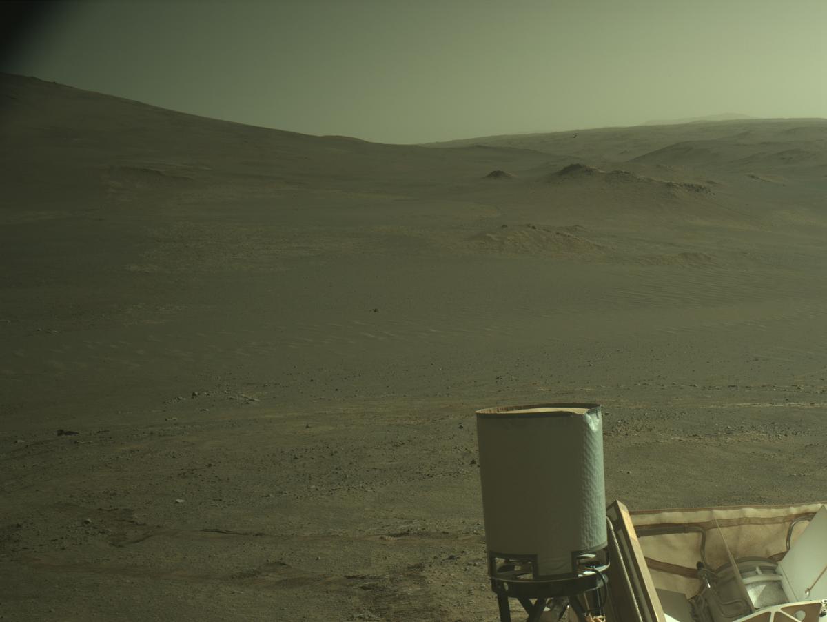 Сегодняшний снимок вчерашнего подъема Perseverance, смотрим назад через корму (ее правую часть).