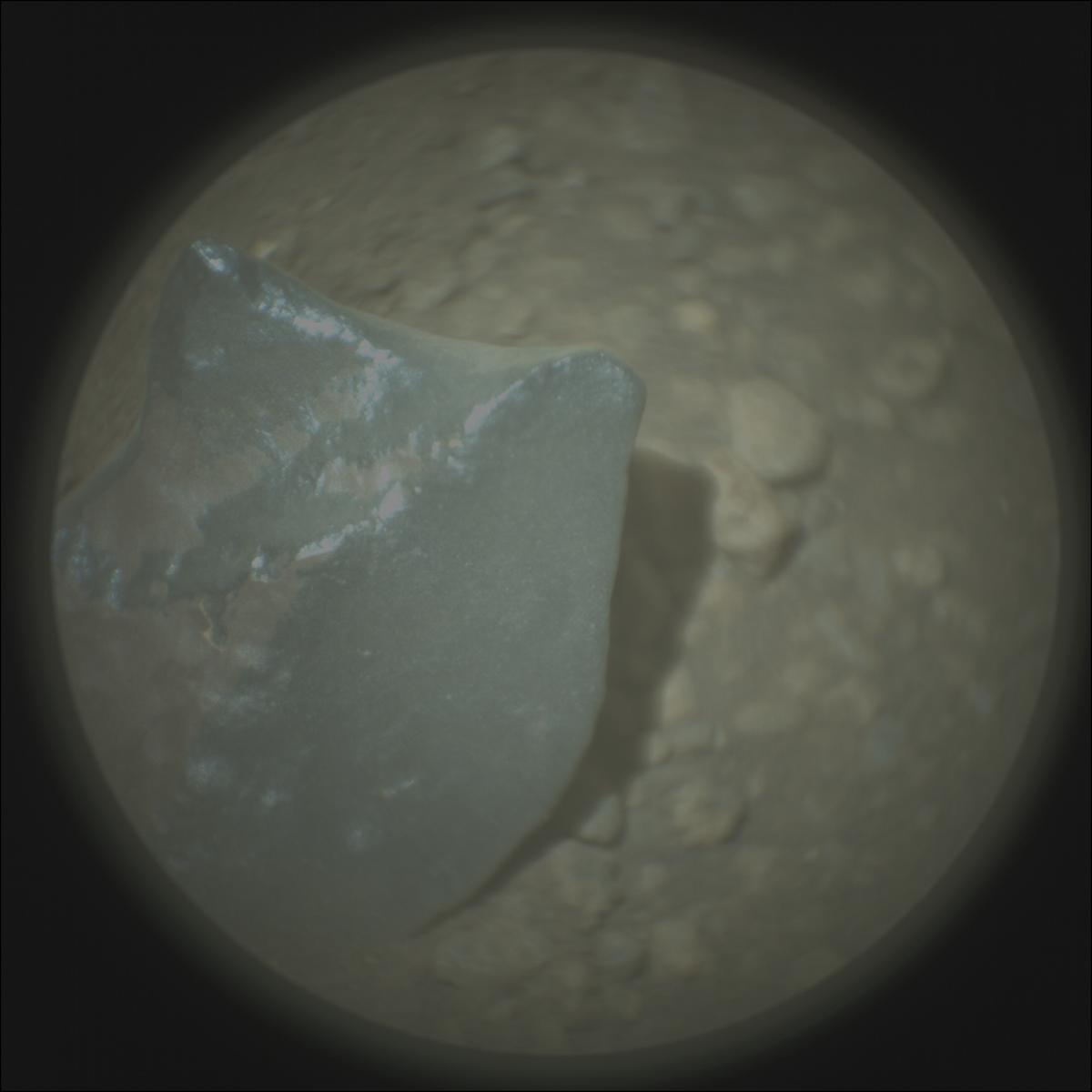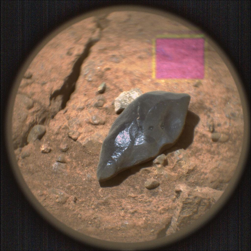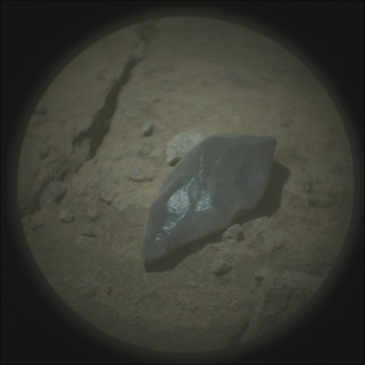 Другая камера, SuperCam, изучала 14 октября небольшой камень, возможно обсидиан, то есть вулканическое стекло. Вот он: