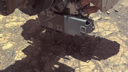 ЦитироватьМарсоход NASA Perseverance получил это изображение с помощью камеры SHERLOC WATSON, расположенной на башне на конце роботизированной руки марсохода.