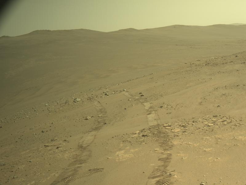NASA's Mars Perseverance rover acquired this image using its onboard Left Navigation Camera (Navcam). The camera is located high on the rover's mast and aids in driving.