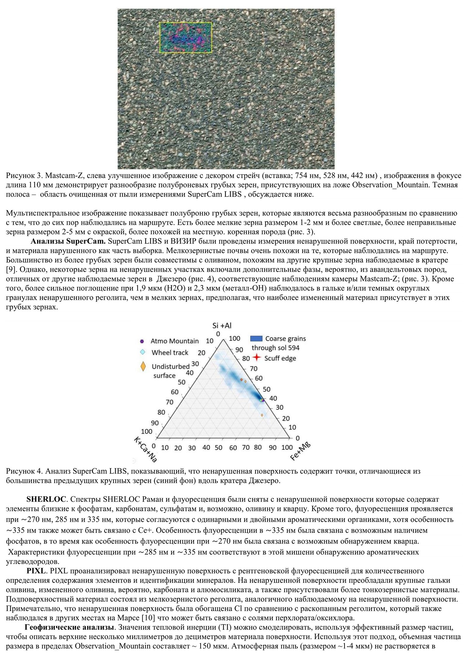 Смотрим в Таблицу 2 и видим, что в песке дельты реки Езеро преобладает кремнезем SiO2 - порядка 45%, конечно на Земле содержание кремнезема может доходить и до 98-99%, но! На Земле вторым по распространенности является карбонат кальция, чего на Марсе нет в принципе и мы не видим в Таблице 2  CaCo3. Читаем у ученых: