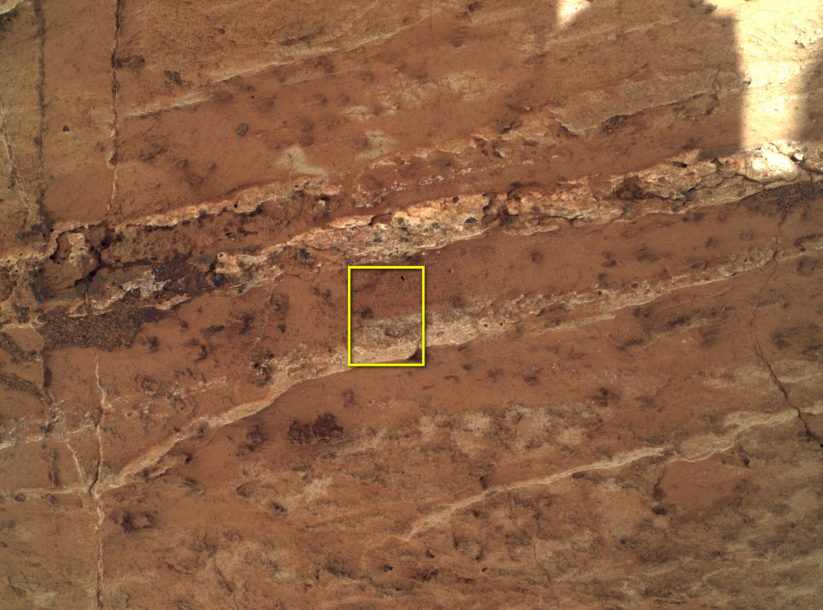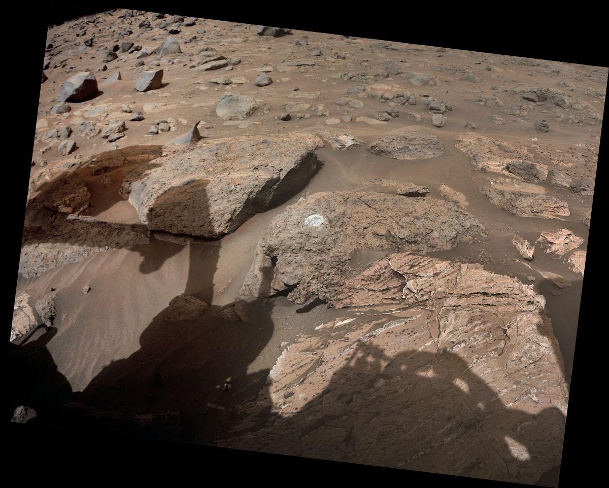Есть предположение, что ровер снова подъехал к камню с отшлифованным пятном для того, чтобы продолжить изучение породы