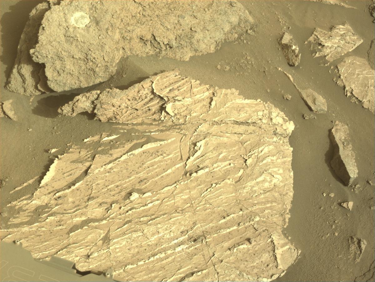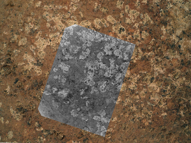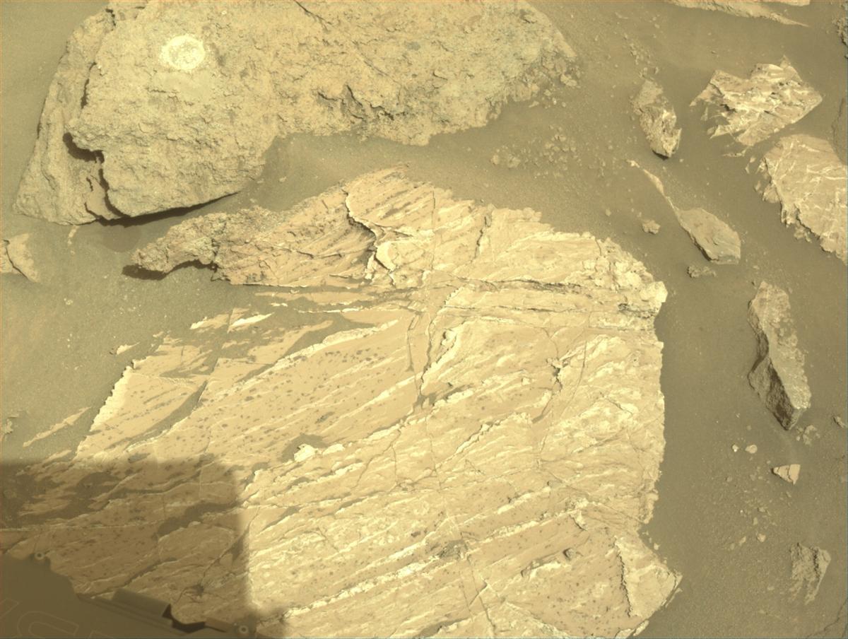 Все эти несколько дней ровер практически находится на месте. Вчера сфотографировал поверхность большого камня который находится справа от того, в котором сделано шлифовальное пятно.