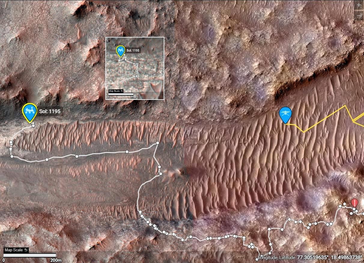 В квадрате на большой карте М20 более подробно изображено место, на котором сейчас пребывает ровер.