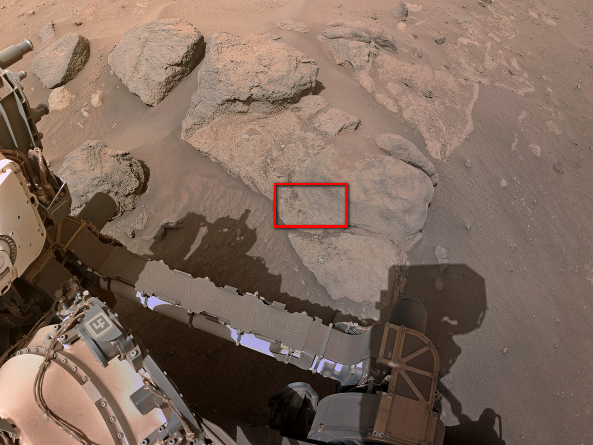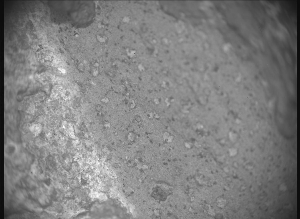 ЦитироватьМарсоход НАСА Perseverance получил это изображение с помощью камеры SHERLOC WATSON, расположенной на турели на конце роботизированной руки марсохода.