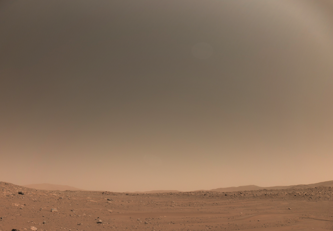 Что касается неба, то вот снимок начала декабря 2023 года, когда закончилось "солнечное соединение" и ровер вышел на связь. Это снимок в обработке штатного фотографа НАСА Кевина М. Гилла, цвет неба нормальный или близкий к нормальному.