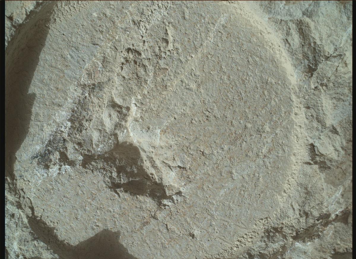 Еще один снимок абразивного пятна сделанный на левом камне теперь уже камерой MastCam-Z, здесь видны полосы: