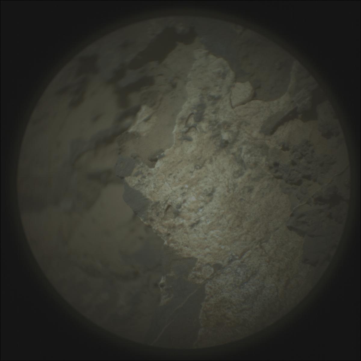 ЦитироватьМарсоход НАСА Perseverance получил это изображение с помощью камеры SHERLOC WATSON, расположенной на турели на конце роботизированной руки марсохода.