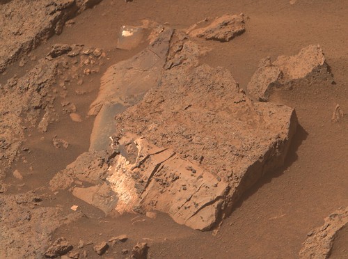 Пришел снимок камня с "внедренной белой полосой" обработанный штатным фотографом NASA/JPL Kevin M. Gill