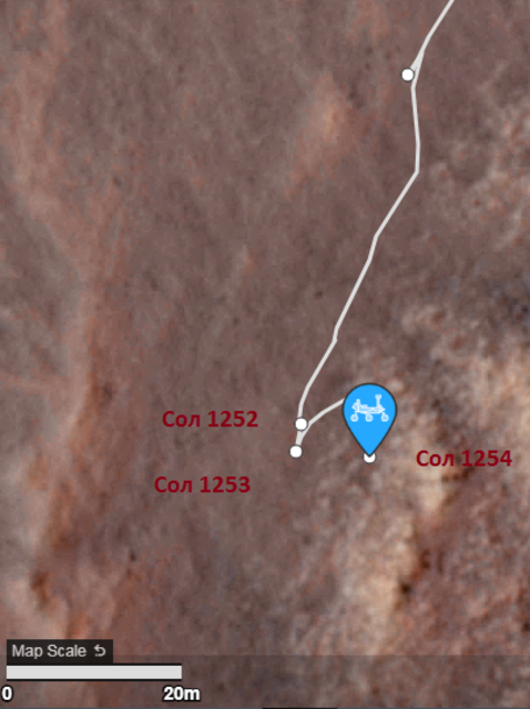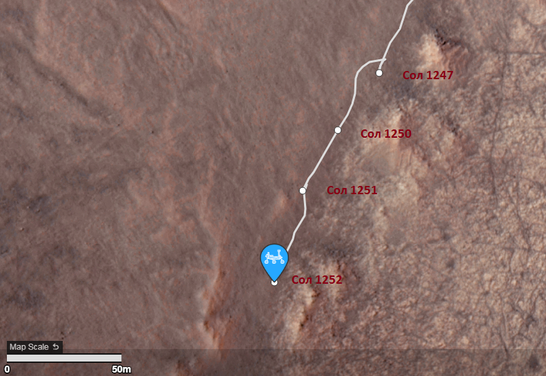 А сегодня, 28 августа (1252 сол), ровер продолжил движение.