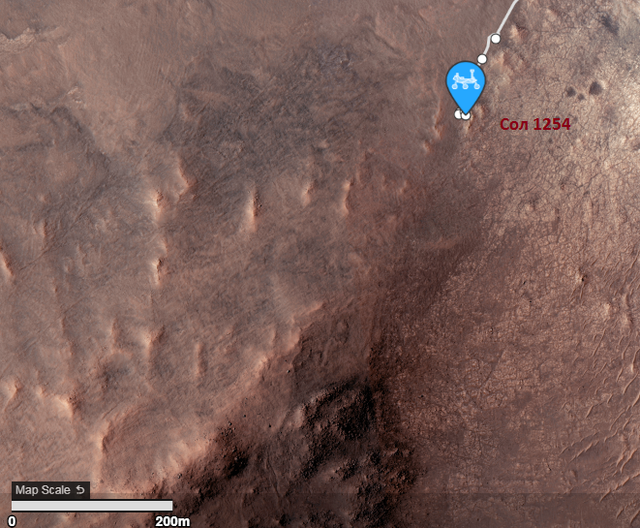 Сегодня, 30 августа (1254 сол)?  ровер продолжил движение, где-то рядом подъезд в Dox Casttle.