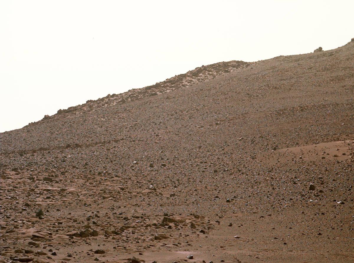 Еще дальше по склону, образуя часть горизонта, находится скалистый замок Докс (Dox Castle), следующая цель марсохода.