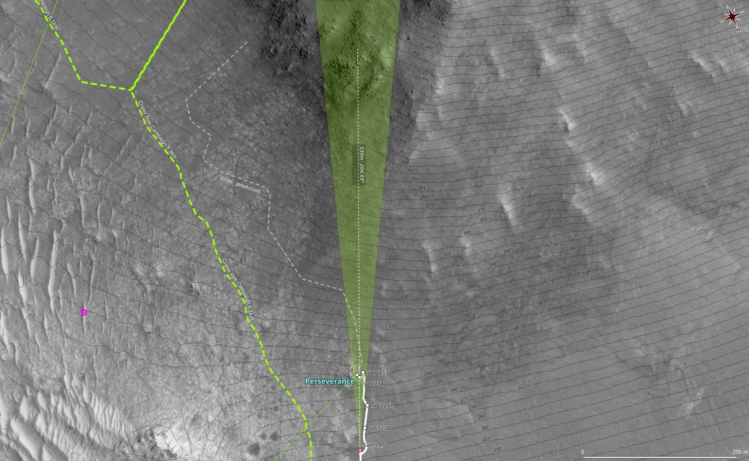 #Perseverance, вернувшись на сол 1248, смотрит вверх по склону на место, которое станет его нынешним местоположением на сол 1256.